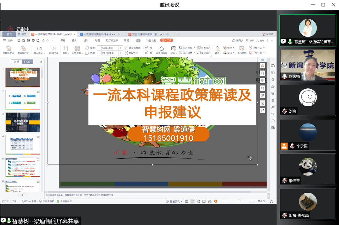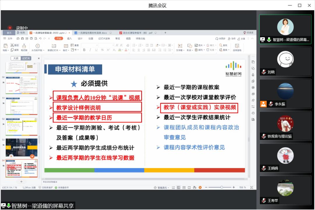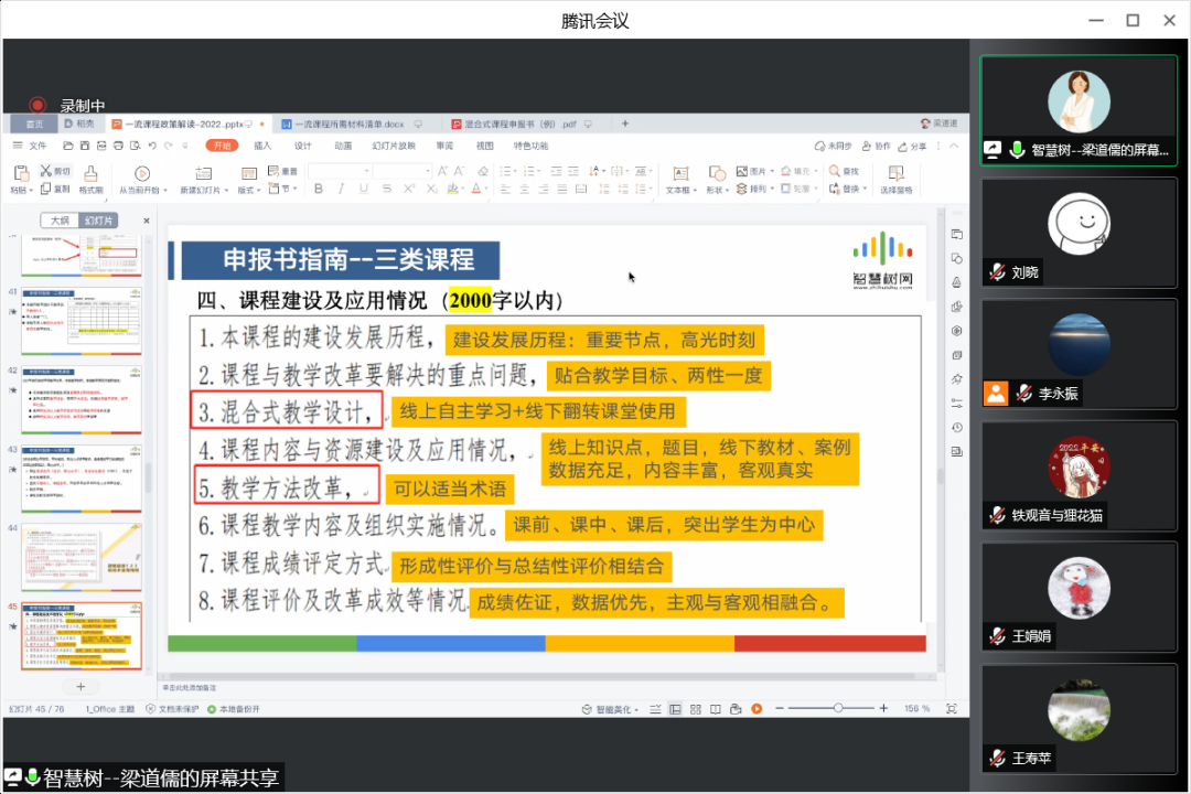最后,梁道儒提醒申请人可将学校支持混合式教学、认定混合式教学工作量等有关政策文件、教职委资料、专家推荐信等作为选择性材料上交,总共不超过2份。
